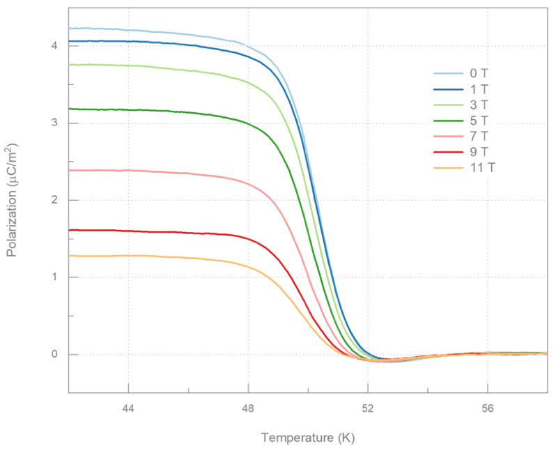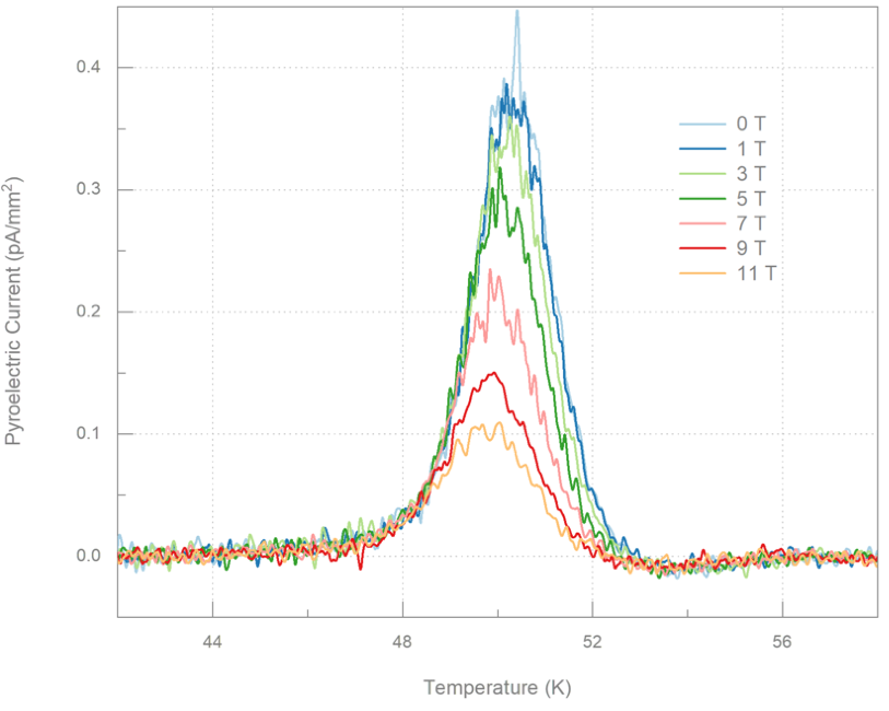 YFeO4样品的在不同磁场下的热释电效应测量