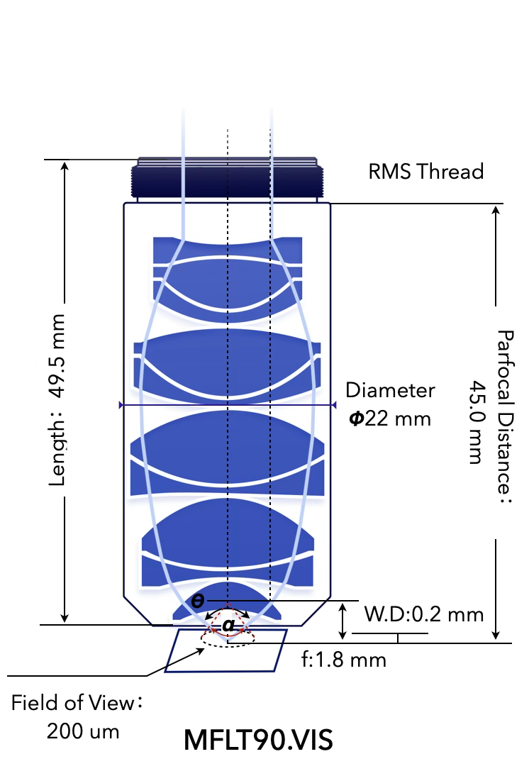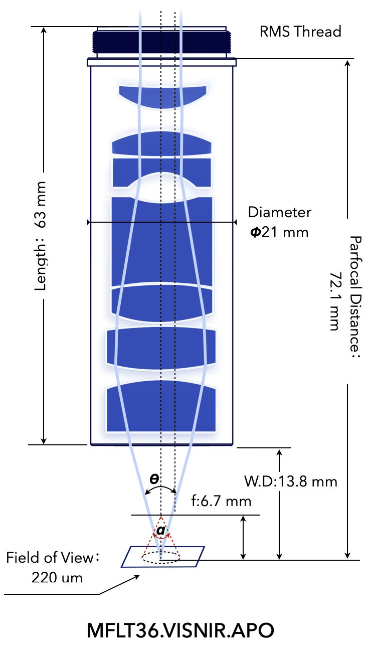 宽波段复消色差,超长工作距离 & 大视野