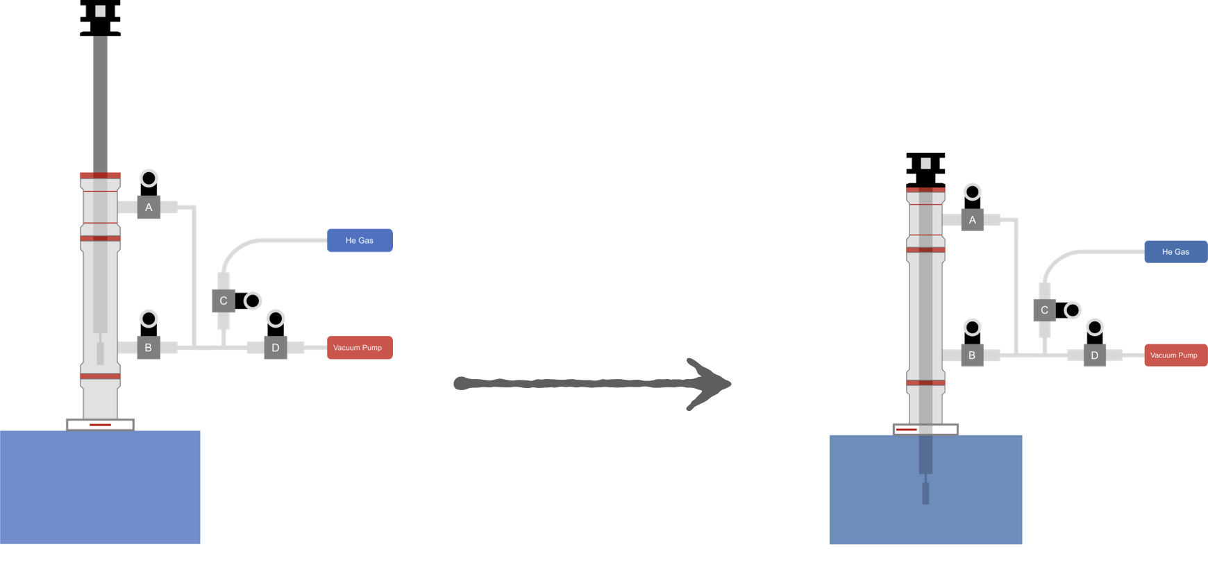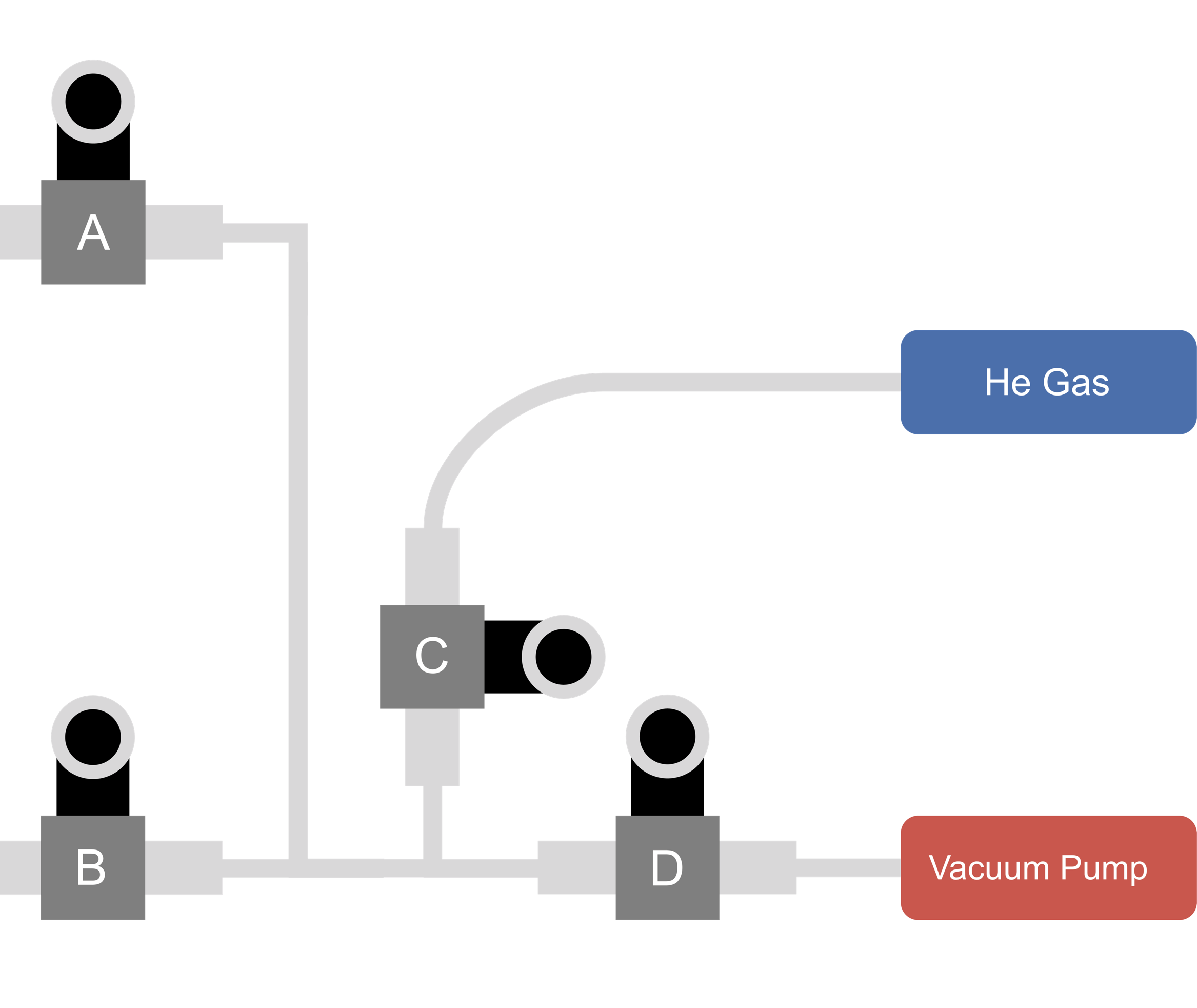 ➡ Close valve-D, open valve-C and fill Helium to about 0.5 atm;