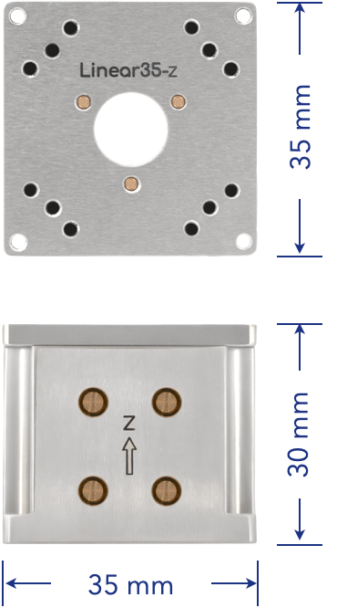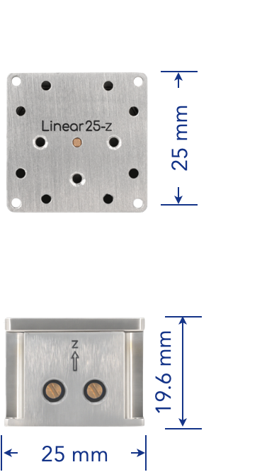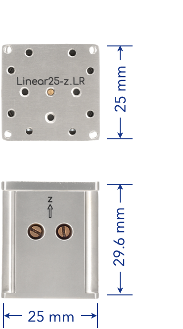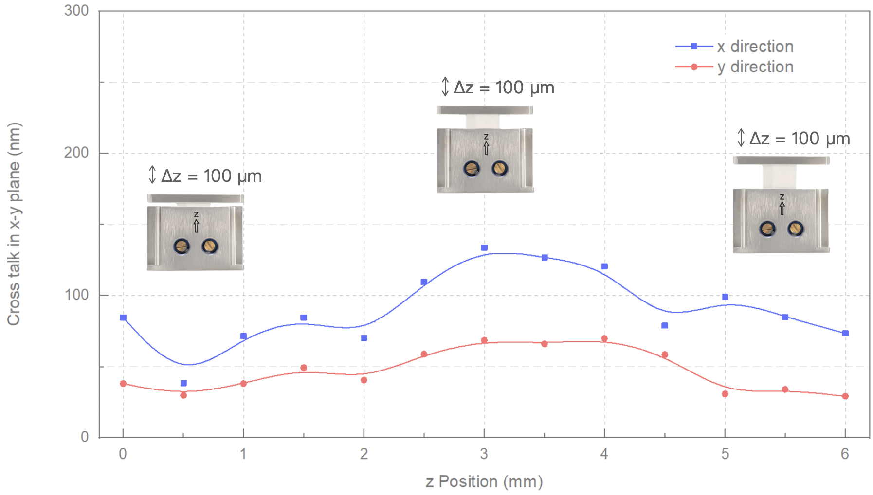1Linear-z系列位移台全行程运动x/y方向偏移量不超过6 μm, 直线度约为行程的千分之一(已扣除安装等因素带来的线性背底);